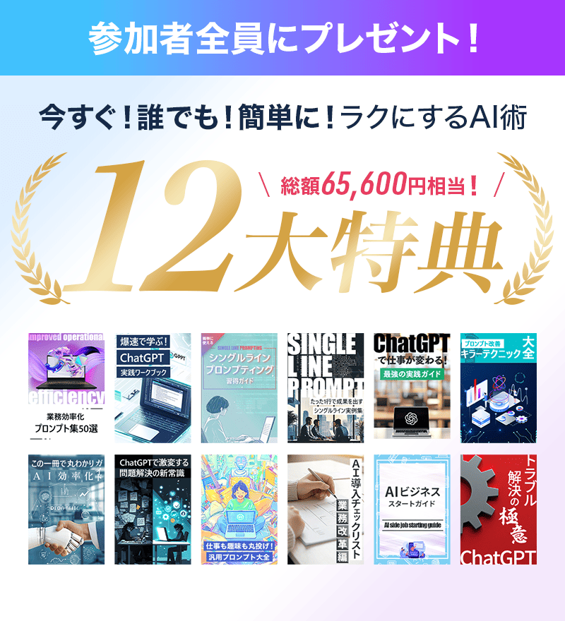 ※特典はすべて電子書籍(PDF)形式にて、セミナーに最後までご参加いただいた方にのみ提供させていただきます。